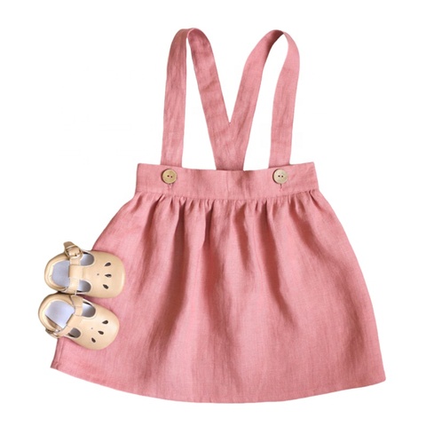 Sıcak satış sevimli önlük elbise keten konfor nefes bebek kız askı etekler elbise