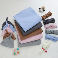Bambu Spandex gelen viskon katı süper yumuşak yenidoğan bebek bebek battaniye bere Headbands 3 adet Set
