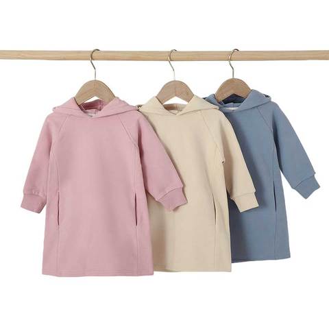 Özel Logo bebek kazak elbise organik pamuk kapşonlu fransız Terry elbise